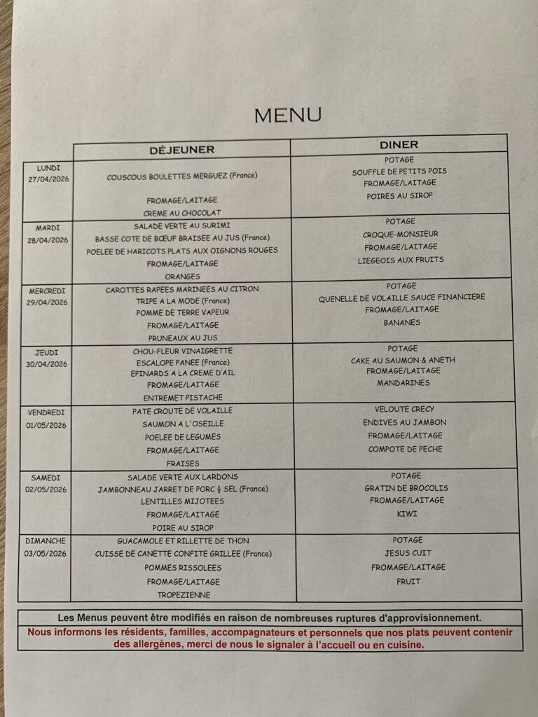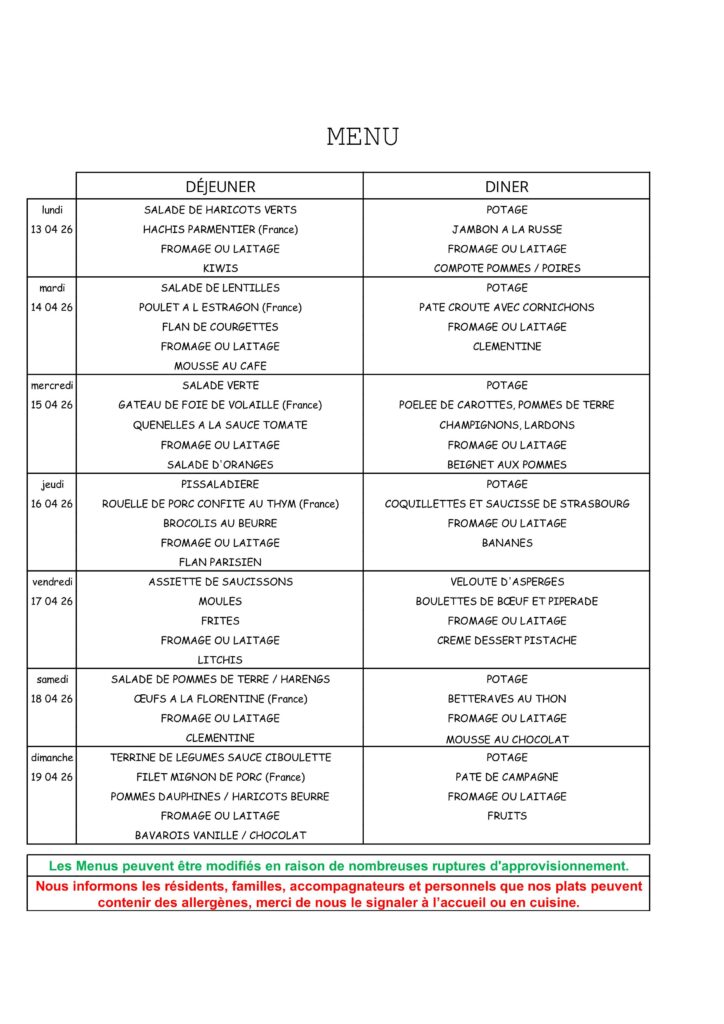 Menu Hebdomadaire