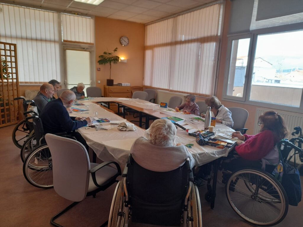 L’association La Sapariote offre aux résidents de l’ehpad, des séances d’Art thérapie, toutes les semaines, animées par Béatrice Benoit. La dernière séance était une séance lumineuse avec du soleil et des flocons tout blancs. Certains résidents ont dit appréciés le calme et trouver l’apaisement. Ces Messieurs et Dames se mettrent rapidemment en création, avec une belle énergie.