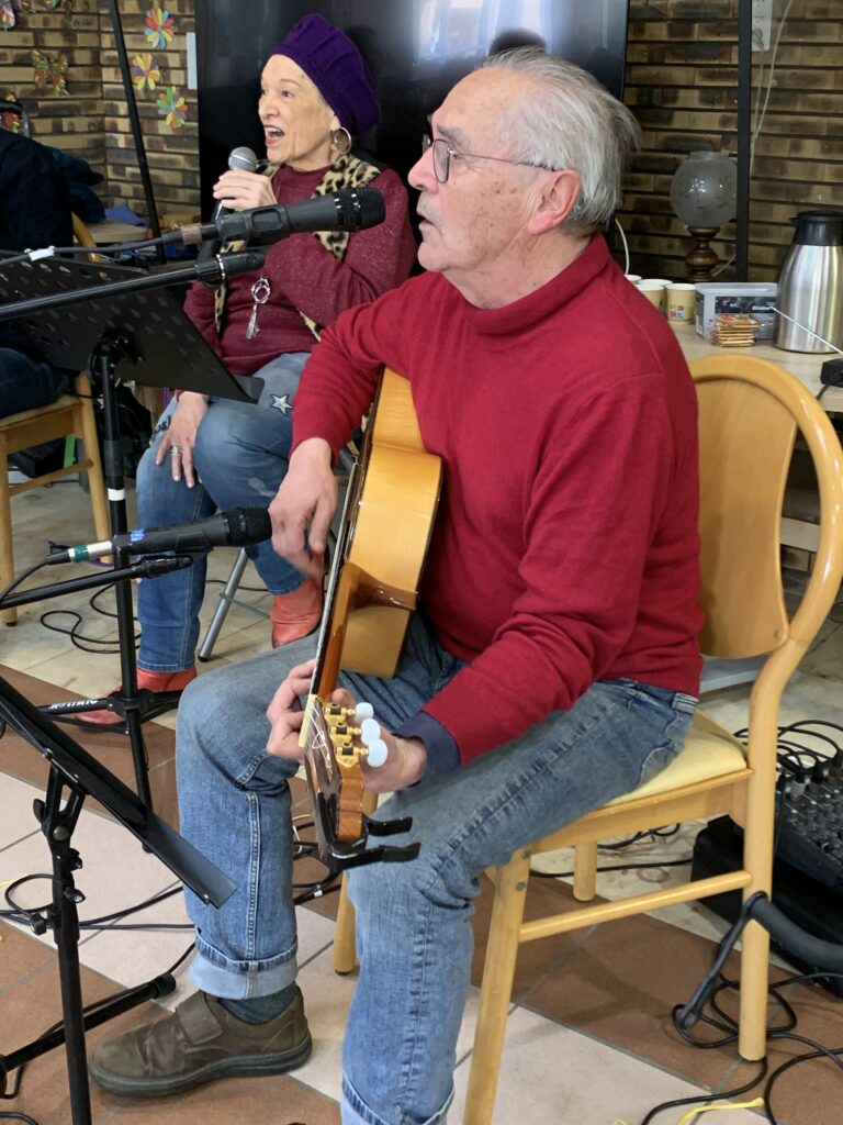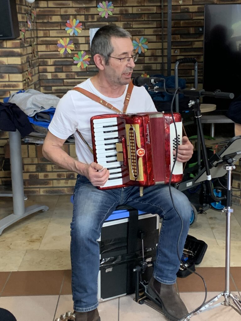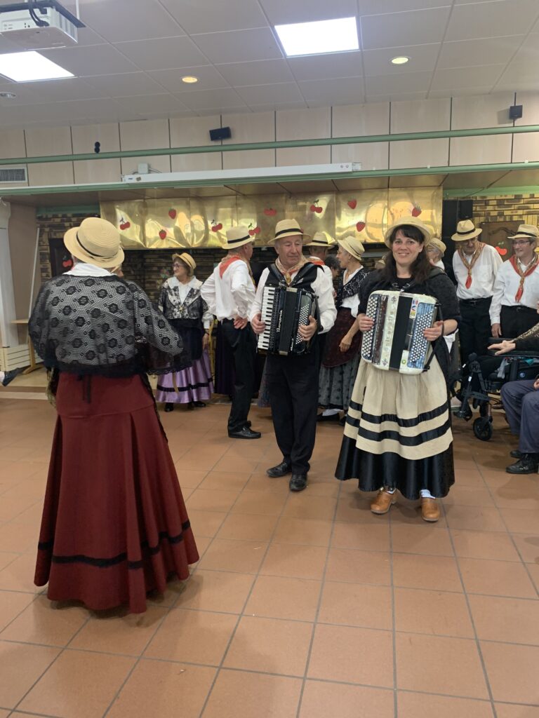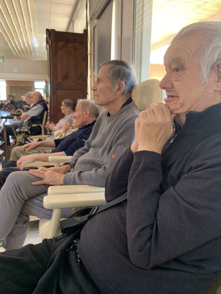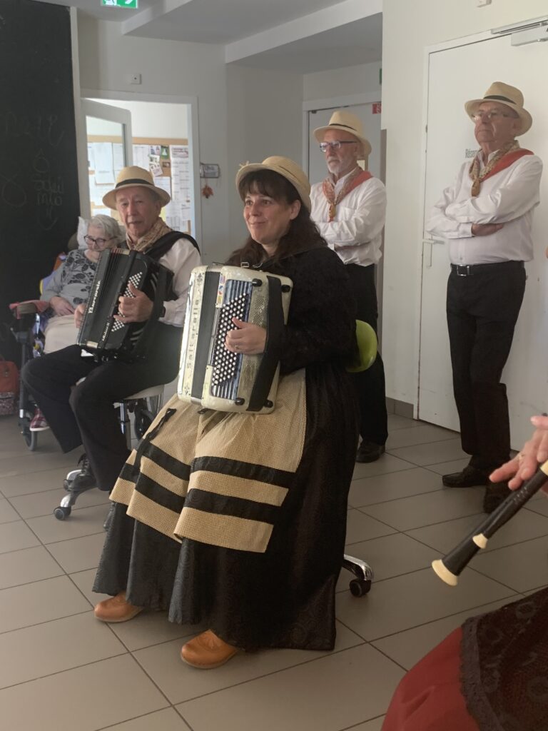 Le mardi 17 mars, le groupe Dajamea, composé de deux guitares, un accordéon et une chanteuse, sont venus donner un concert aux résidents. Magnifique ! Il reviendra en septembre, avec des chansons en l’honneur de la fête du roi de l’oiseau.