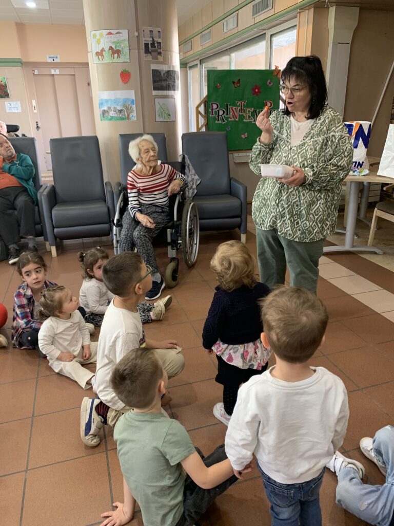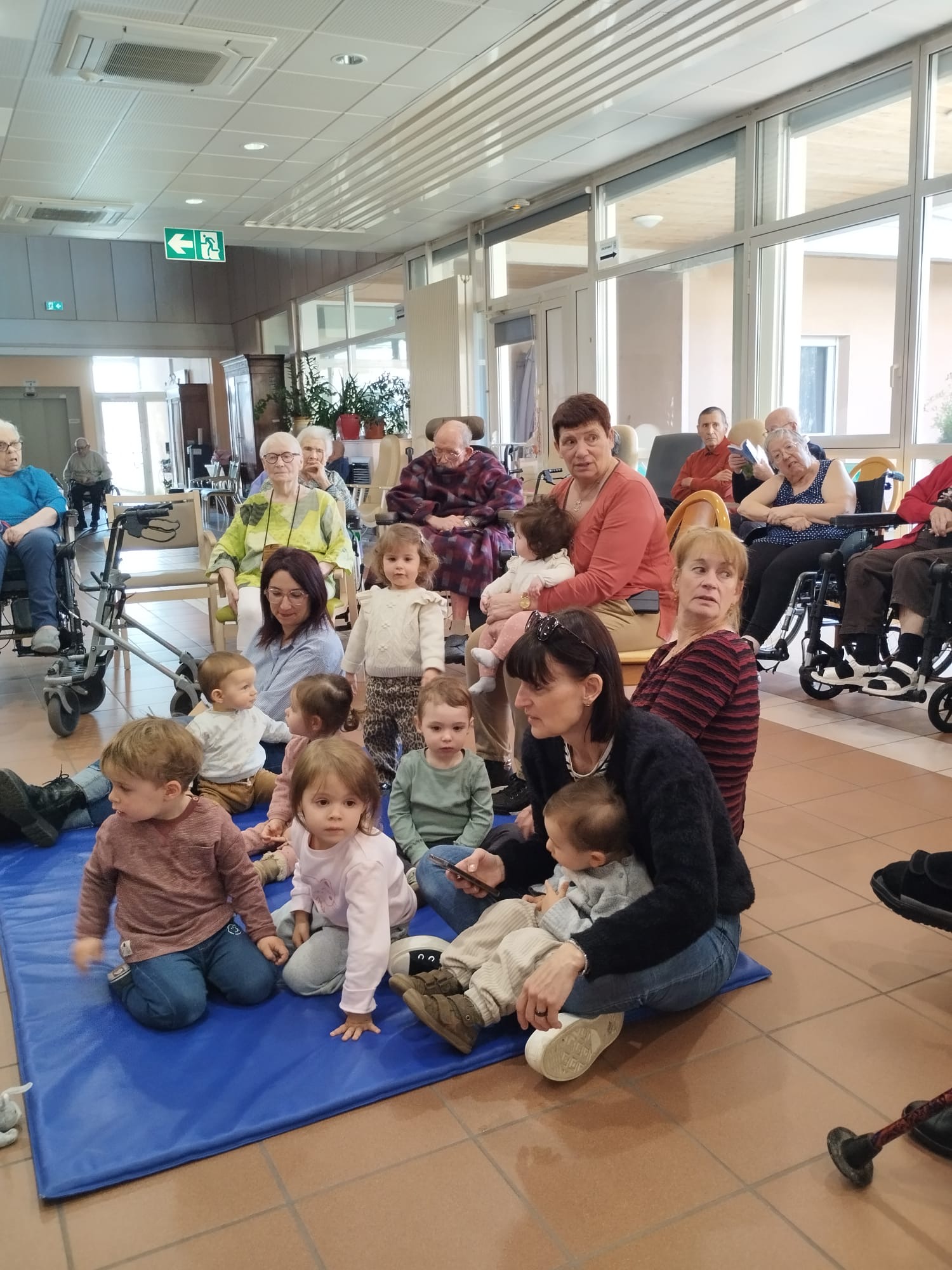 Le vendredi 13 février, le relais d’assistante maternelle est venu à la maison de retraite. Des histoires animées ont été contées avec des chansons et animées avec le tapis d’éveil. Plusieurs animaux ont été cachés à l’intérieur et chacun devait découvrir leur nom.