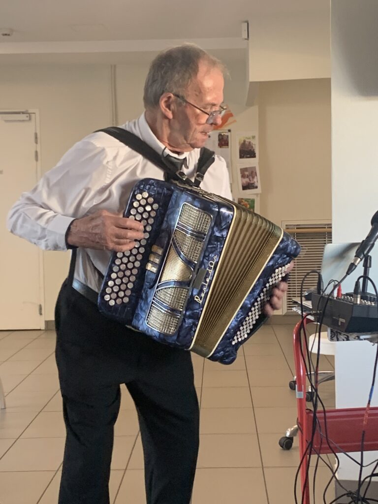 Le mercredi 25 février, nous avons fêté les anniversaires des résidents nés au mois de février. C’est Jojo et son accordéon qui assuré l’animation musicale. Les cuisines avaient préparé de bons gâteaux et le champagne coulait à flot.